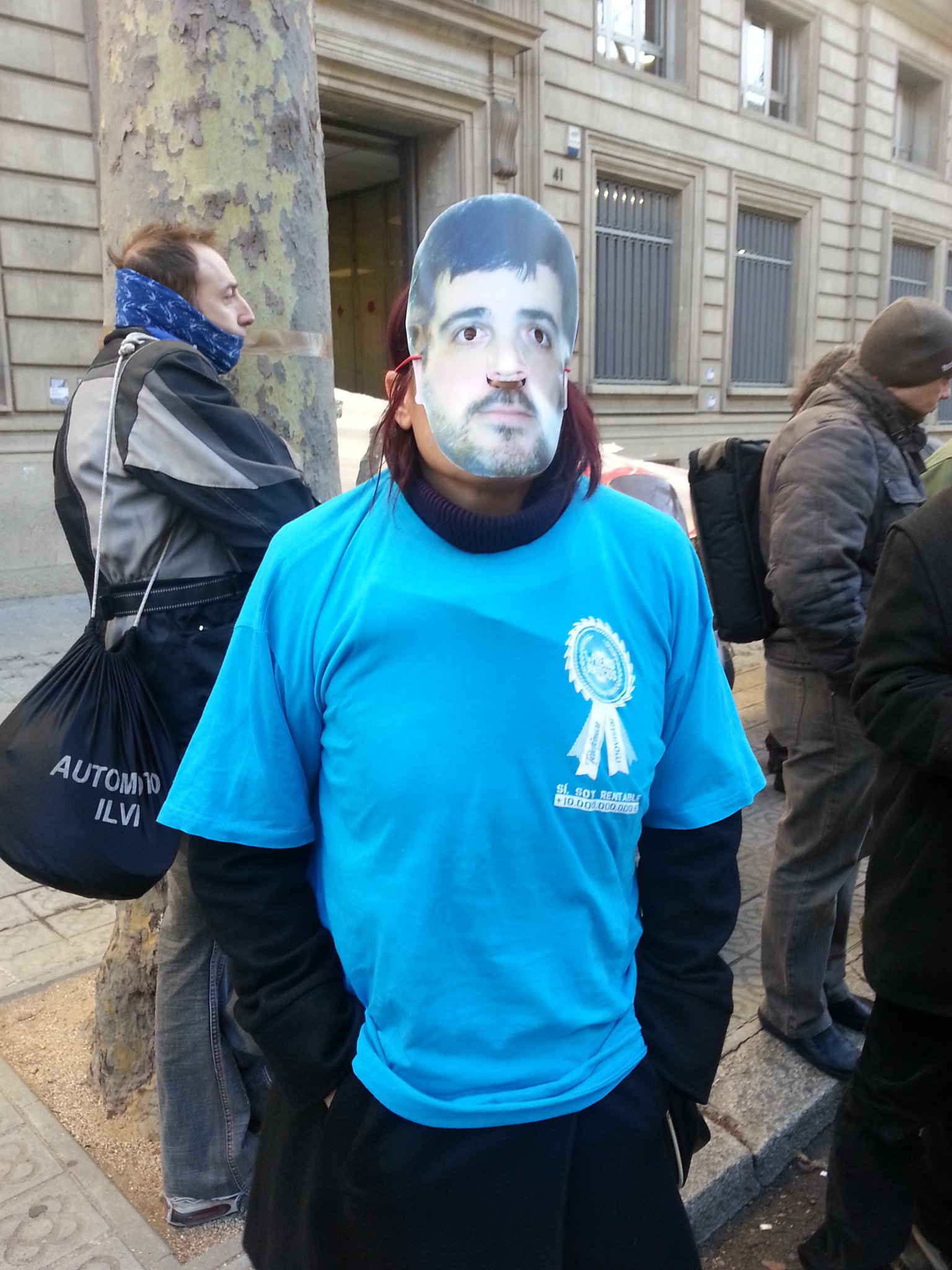 Marcos de @HHTelefonica dona suport a l'Assemblea Solidària amb Andreu de Cabo, el dia 7 de febrer a la concentració a les portes del jutjat.